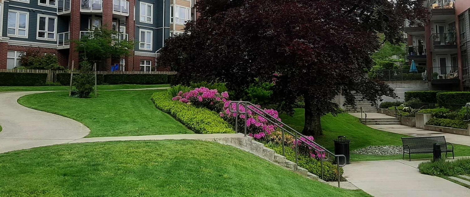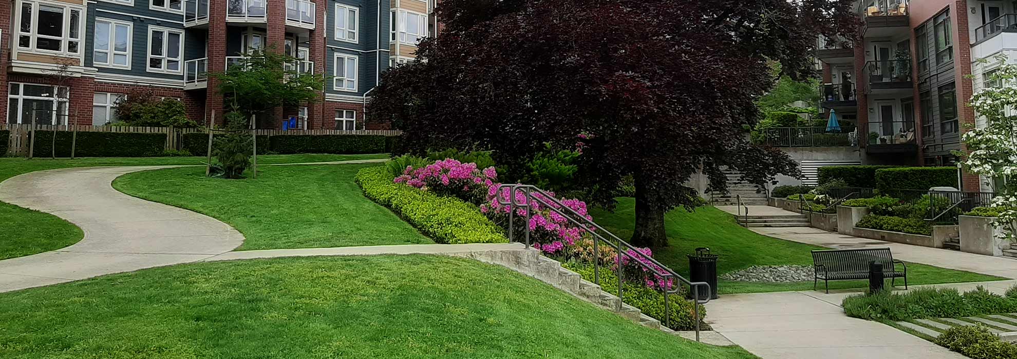 Contact us for an estimate for your large residential, rental property, strata, commercial, municipal, and provincial government site Landscape Maintenance proposal.
